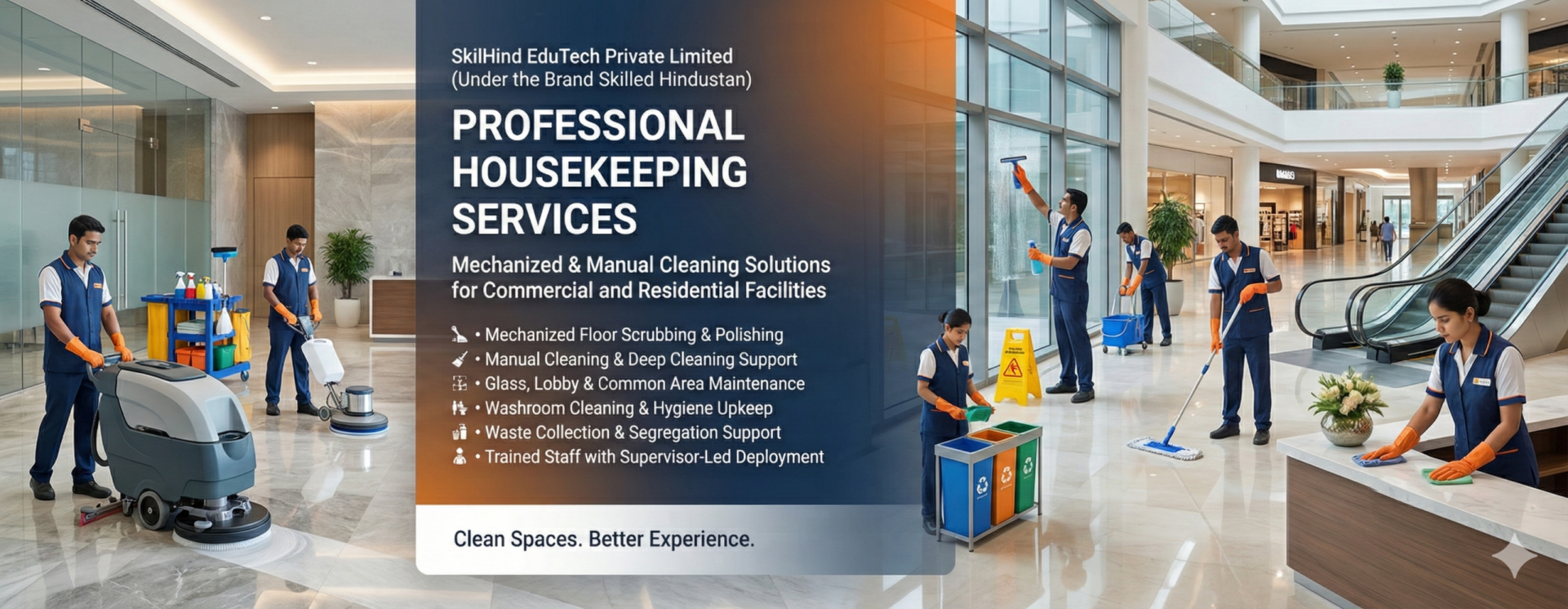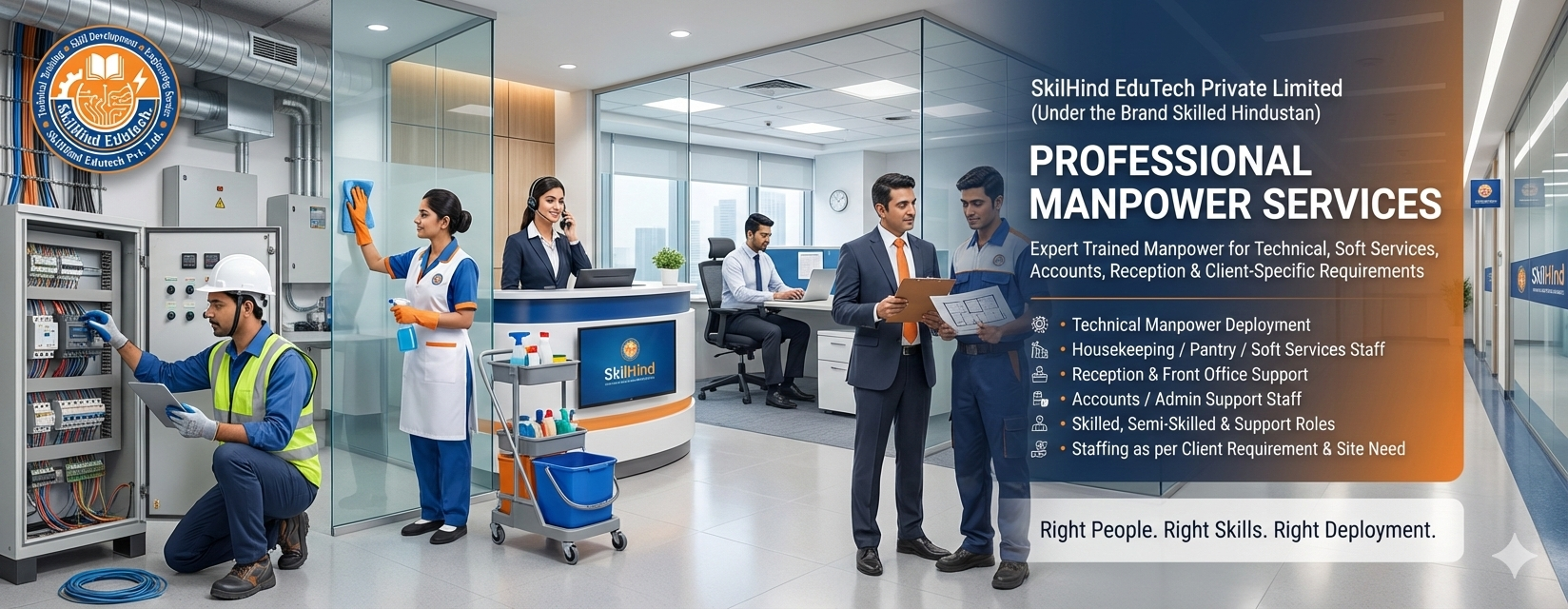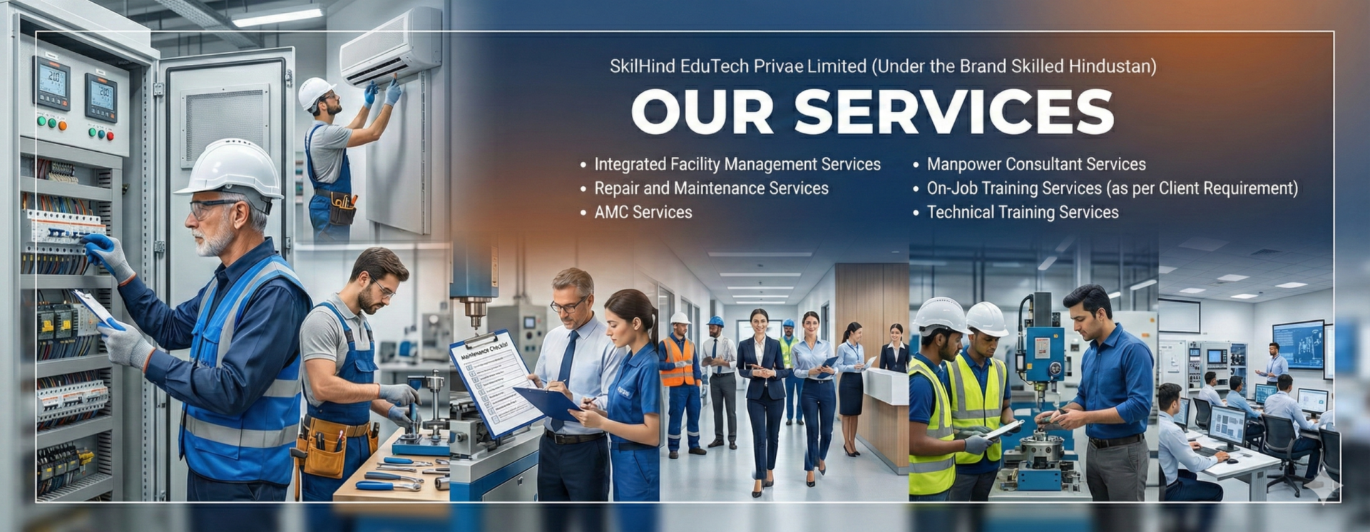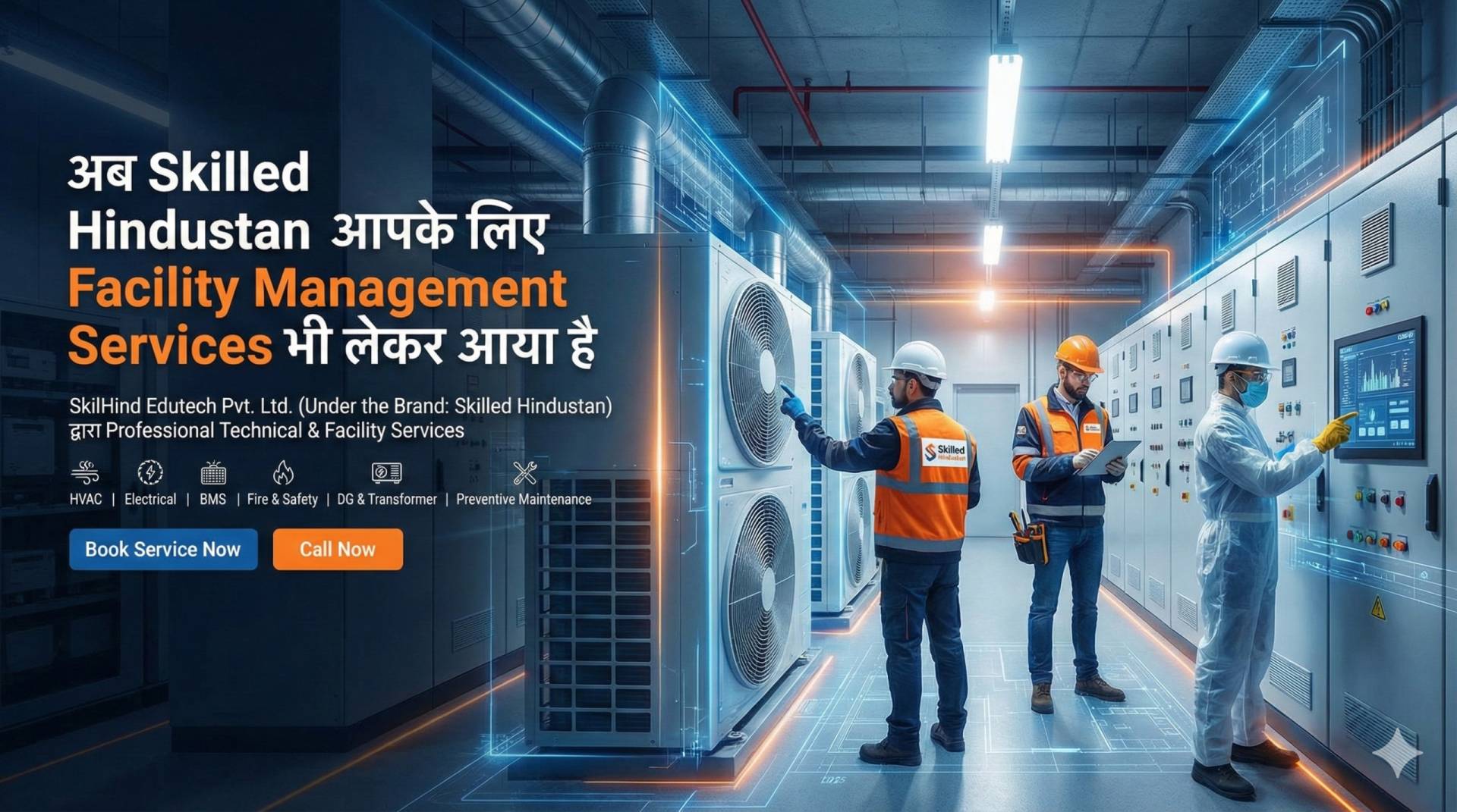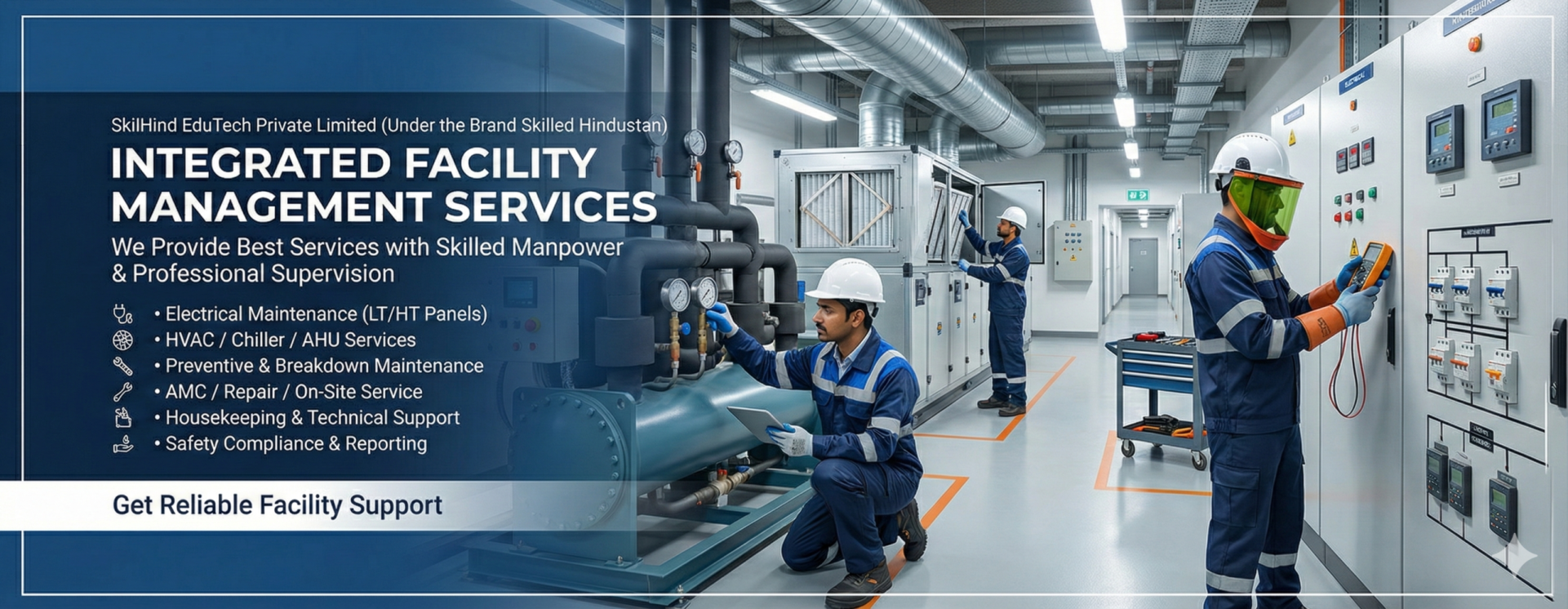 SkilHind EduTech Private Limited has launched Integrated Facility Management Services covering Electrical, Mechanical, HVAC, Plumbing, Carpentry, Housekeeping, and allied support services. With Six Years of proven Repair & Maintenance execution and a strong technical training ecosystem under the brand Skilled Hindustan, we deploy skilled manpower with supervisor-led site control, preventive maintenance planning, and measurable service quality.